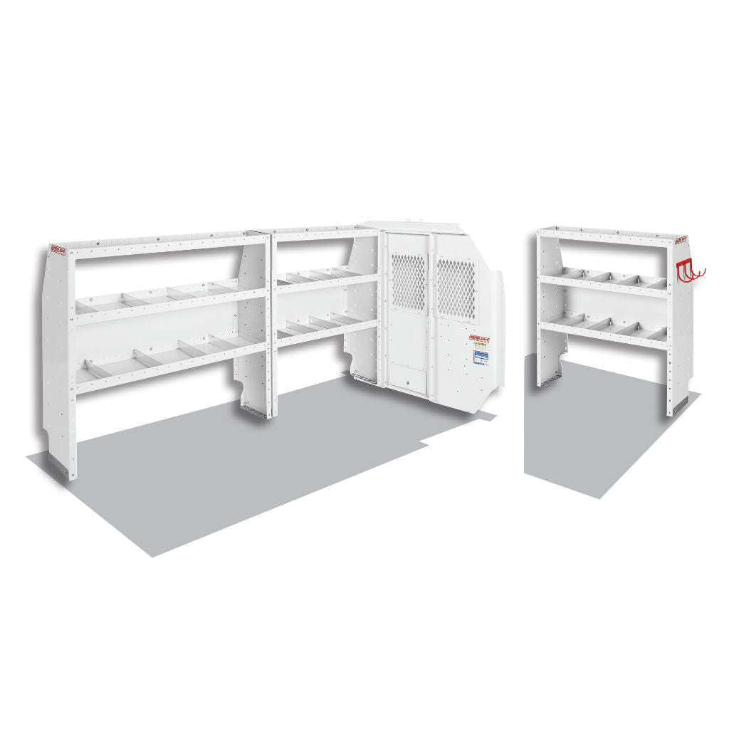 Designed for basic jobsite requirements and delivery service, the Model 600-8110R van package for Full-Size, Low Roof, 130in wheel base Ford Transit vans provides cargo van shelving sized to fit the commercial van interior that can be adjusted to meet any storage needs. It includes a sturdy van bulkhead for maximum protection against shifting loads. Additional van products are available to create a custom van storage solution.
