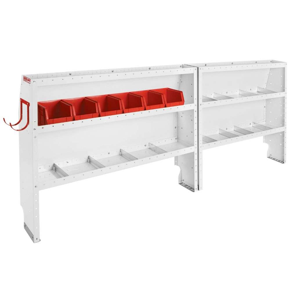 - Includes 44in high adjustable cargo van shelving and a mesh van bulkhead with swinging door kit