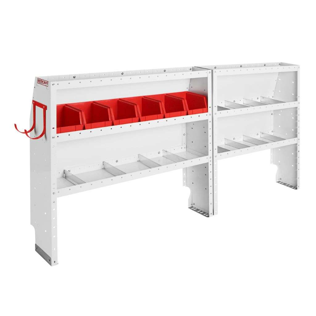 - Includes 44in high adjustable cargo van shelving and a mesh van bulkhead with swinging door kit