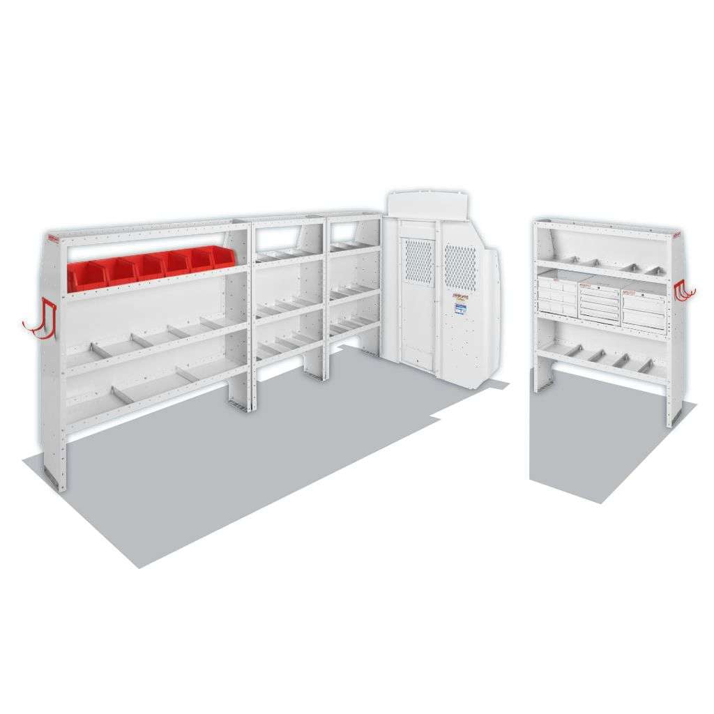 - Includes 60in high adjustable cargo van shelving and a mesh van bulkhead with swinging door kit