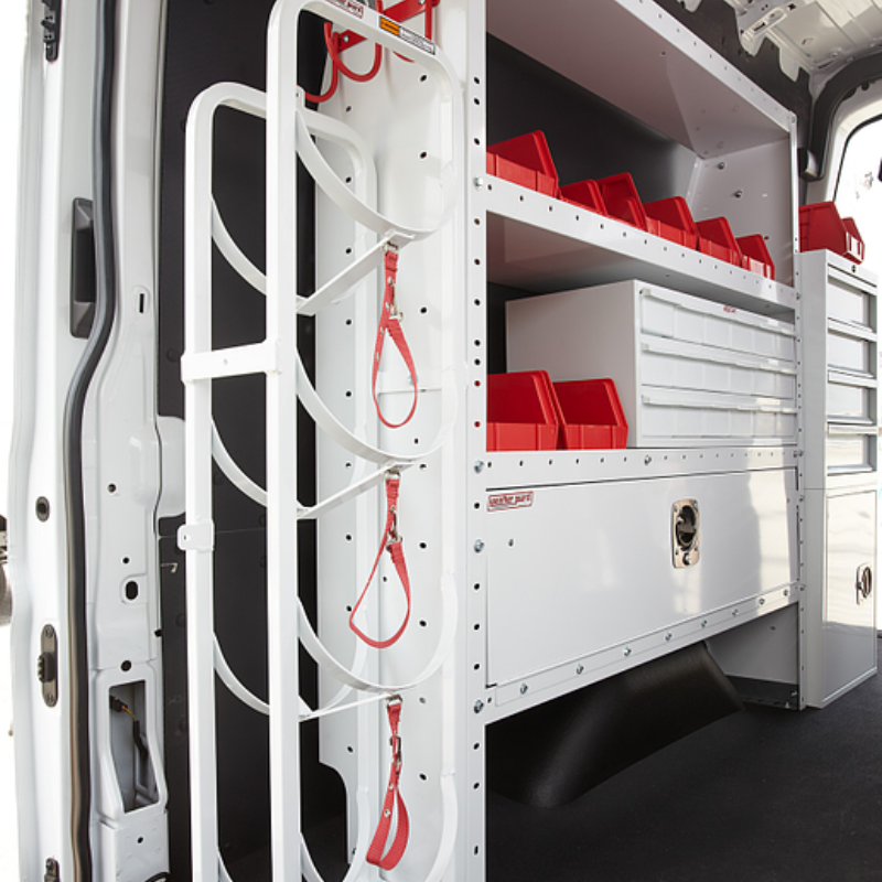 - Van shelving bins measure 7 inches high x 8.25 inches wide x 14.75 inches deep